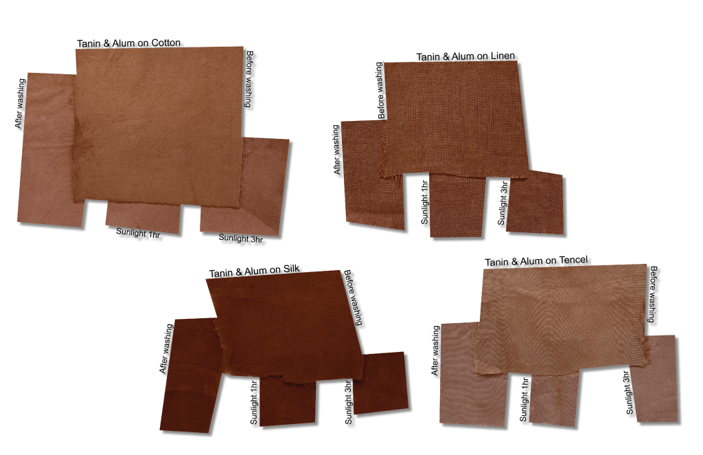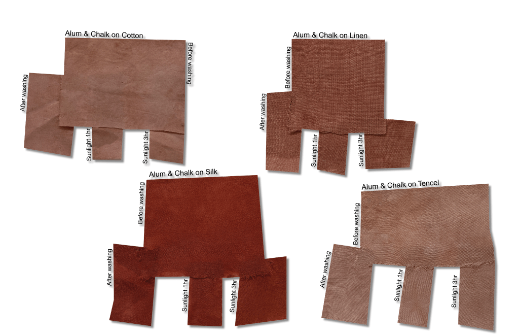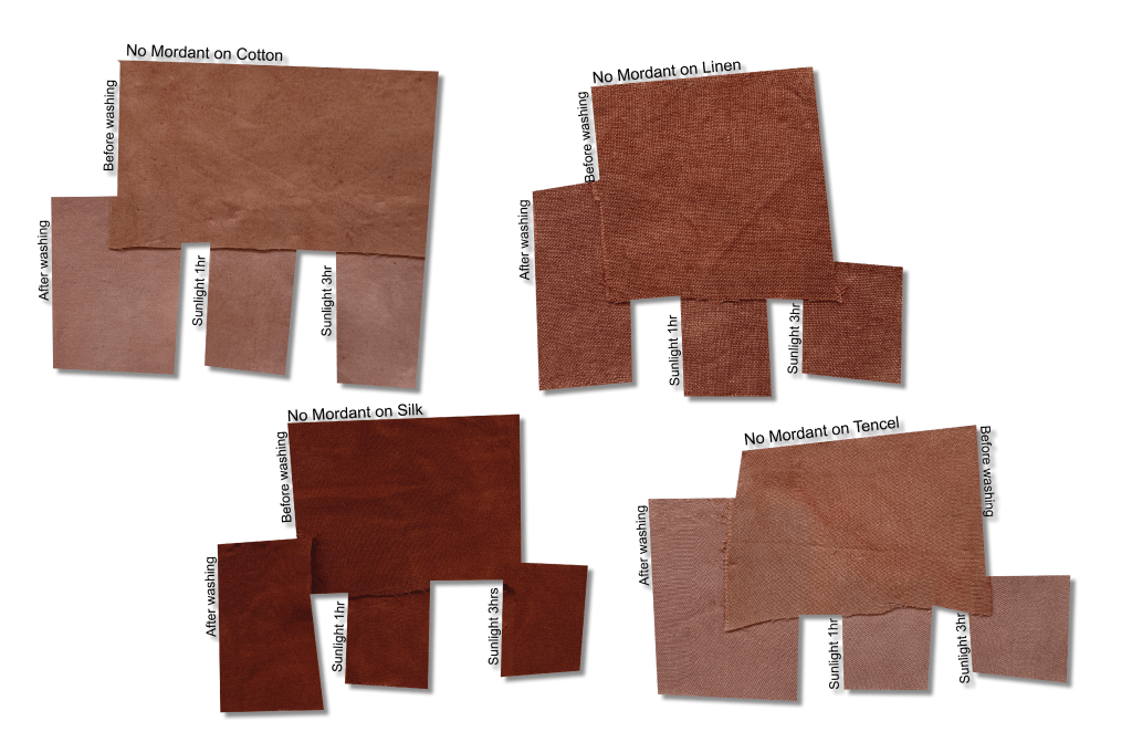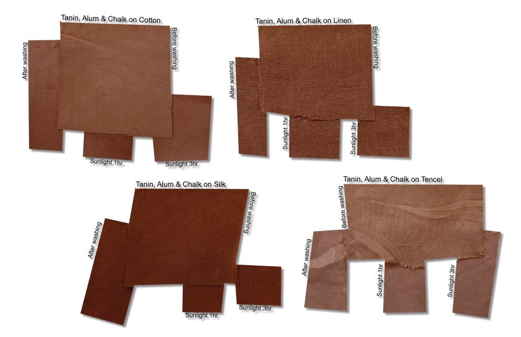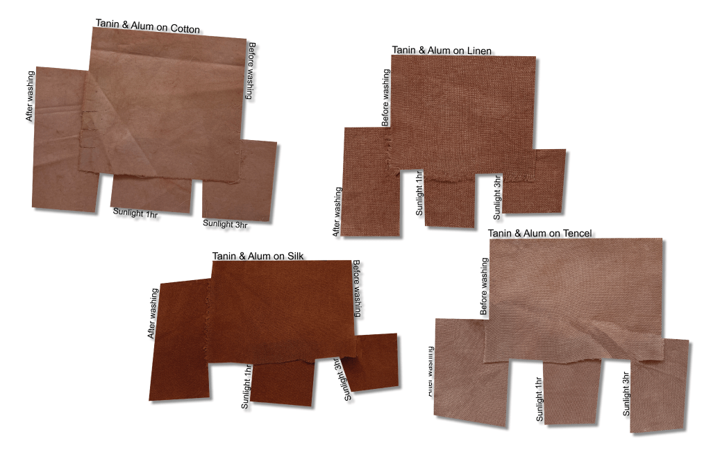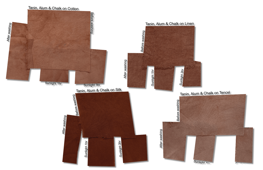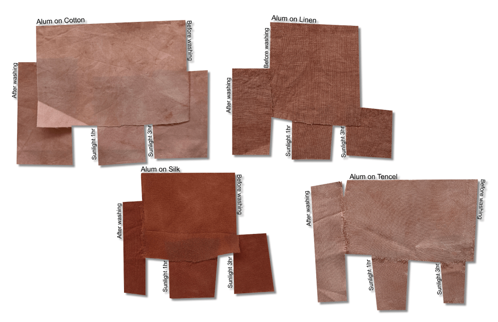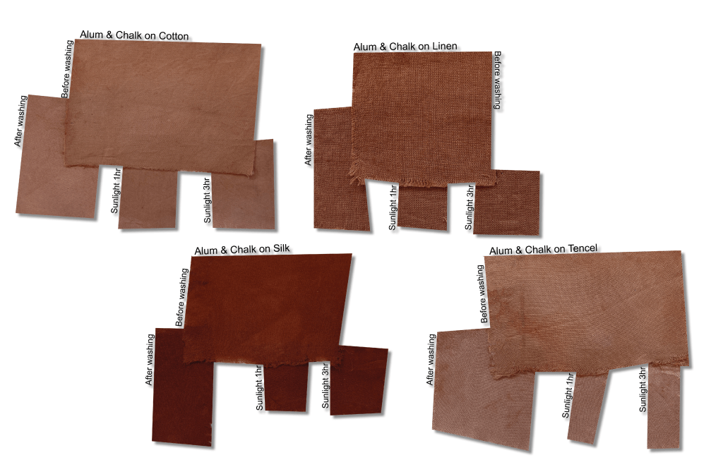 I tested several different mordanting methods for color fastness. I used tannin, alum, chalk, soy, and combinations of those mordants to treat my fabrics. Cotton, linen, Tencel, and silk were the fabrics I tested these methods on.
